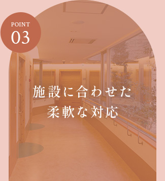 施設の環境や利用者の方の状態に合わせて、施術内容や時間をオーダーメイドで決められるので、無理なく心地よい施術が可能です。